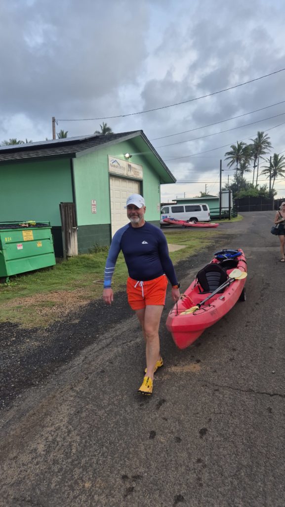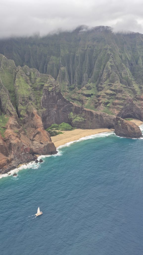 I wtedy doznaję olśnienia. Kilka miesięcy temu gdy Miś Travel planował atrakcje na wyspie Kawai’i, znalazł firmę oferującą rejs do Na Pali ale niestety limit wieku nas nie puścił. Max 40 wiosen, a Niedźwiedź 50+, ja 50-, uff nie trzeba będzie ekstremalnego rejsu.