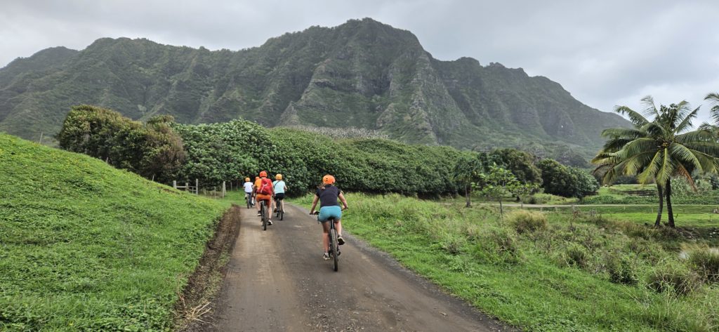 Hawaje są jednym wielkim planem zdjęciowym. Rowerami wybieramy się na mały rekonesans do parku Kualoa Ranch.
