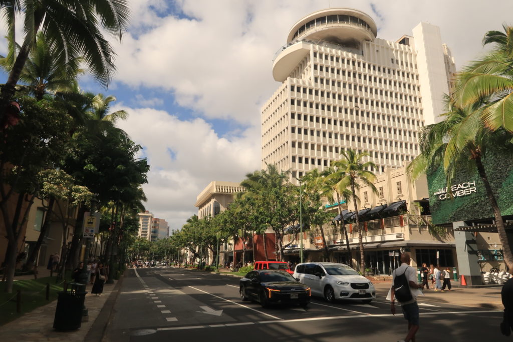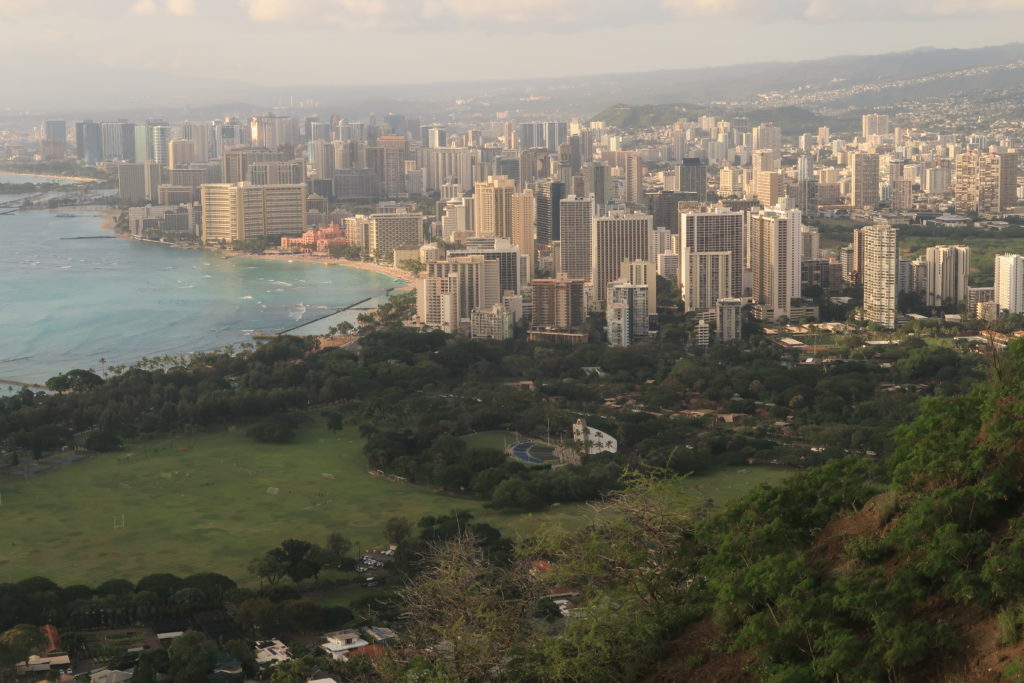 I jeszcze kilka słów o Honolulu. Wyobrażałam sobie betonowe miasto bo doczytaliśmy, że mieszka tam około 1 mln osób czyli większość Hawajczyków. Stolica okazuje się bardzo nowoczesna w swoich wieżowcach ale zawsze w otoczeniu palm i innej bujnej tu roślinności. Dużo tu fajnych restauracji i sklepów z hawajskiej ciuszkami.